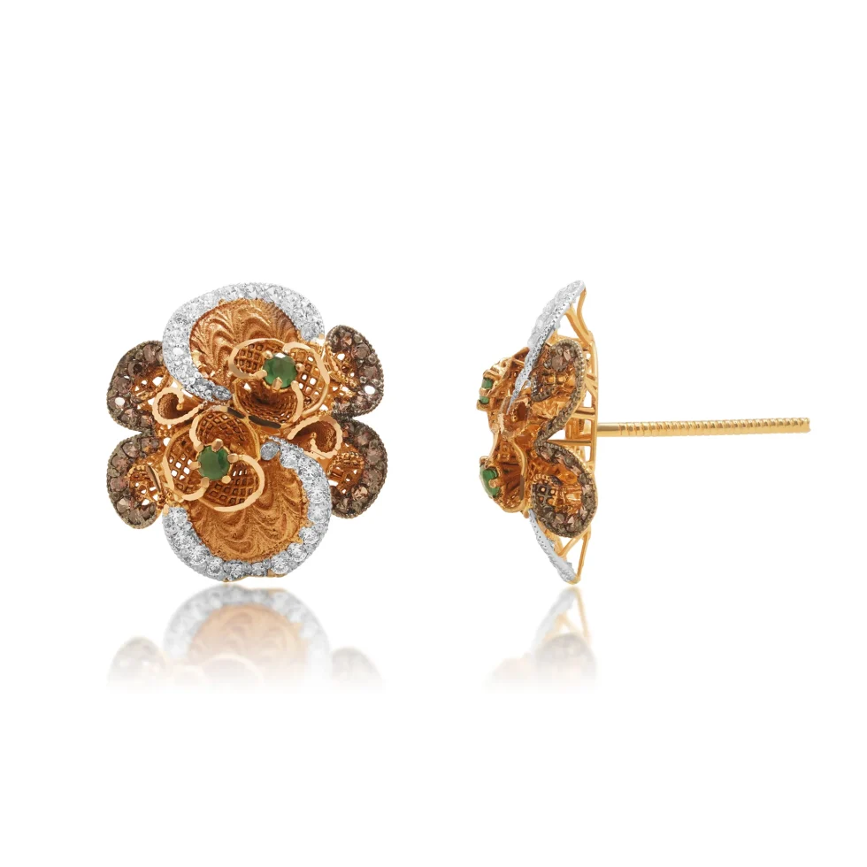 These gold tops present a beautifully structured floral form surrounded by textured gold accents. The layered construction and refined centerpiece create a radiant effect, perfect for weddings and cultural occasions.