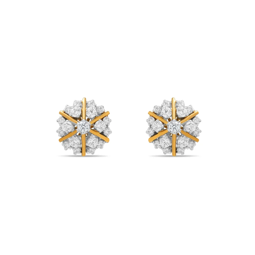 The Auralis Spark Set captures the brilliance of starlight through its refined six-point motif. Each golden arm radiates from a shimmering core of clustered stones, symbolizing light, unity, and perfection. The design merges geometric precision with soft luminosity, creating a timeless piece that transitions effortlessly from daily elegance to evening allure.