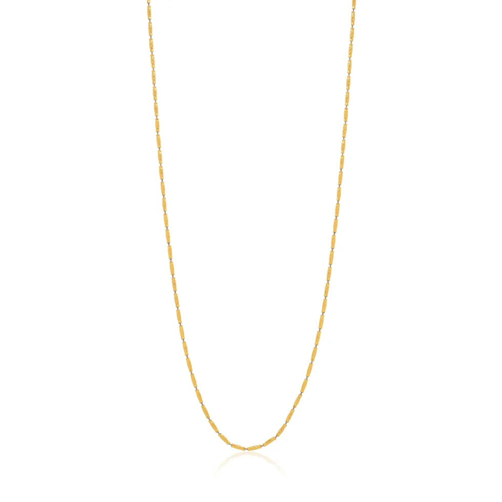 Crafted with sleek rectangular gold links, this chain offers a modern linear rhythm with a smooth, graceful drape. Its refined simplicity makes it a versatile choice for everyday wear or subtle layering.