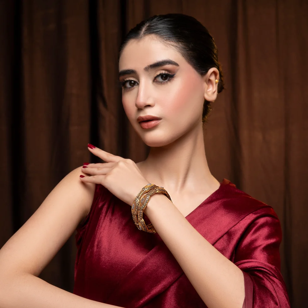 The Aurion Legacy Karas reflect the spirit of timeless craftsmanship. Each link is engraved with intricate motifs and antique textures, blending old-world artistry with royal charm. A piece that radiates tradition and elegance in every detail.