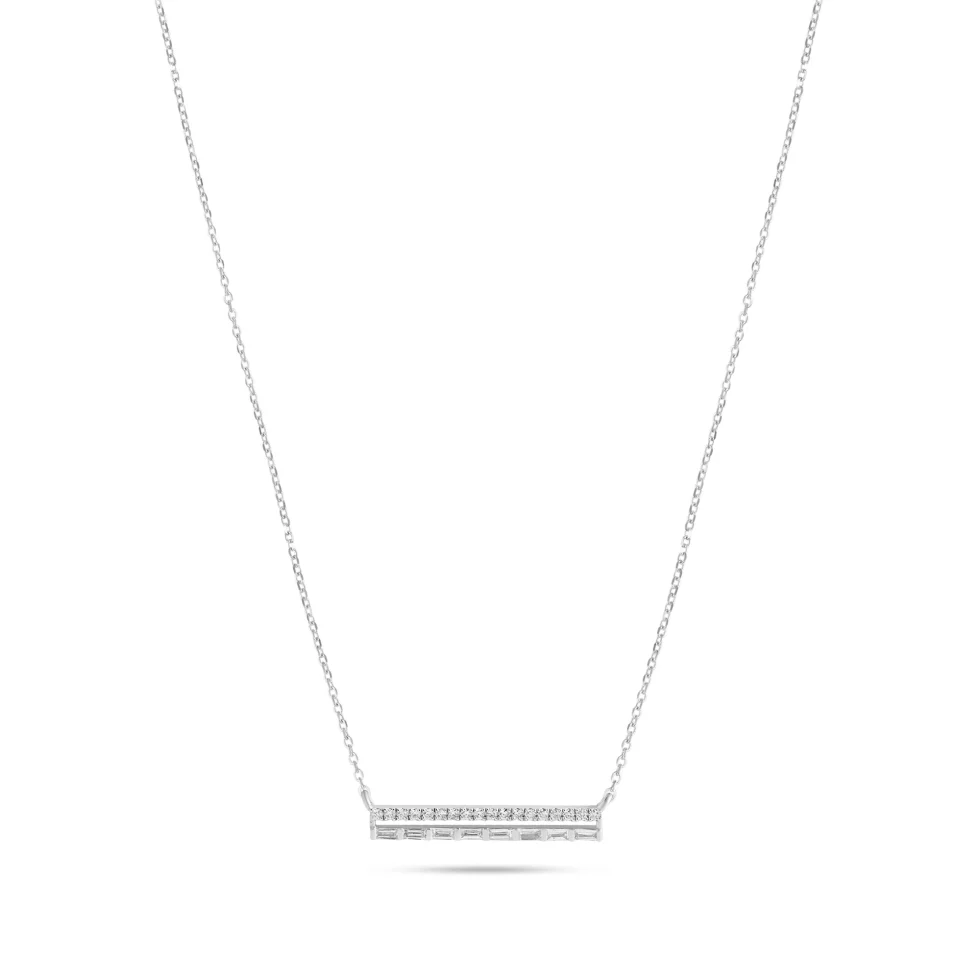 The Aria Line Diamond Chain is a celebration of modern elegance and balance. Crafted with a sleek horizontal bar, it features a perfectly aligned row of hand-set diamonds that glimmer with refined brilliance. Each stone reflects meticulous craftsmanship, creating a radiant beam of light that captures attention.