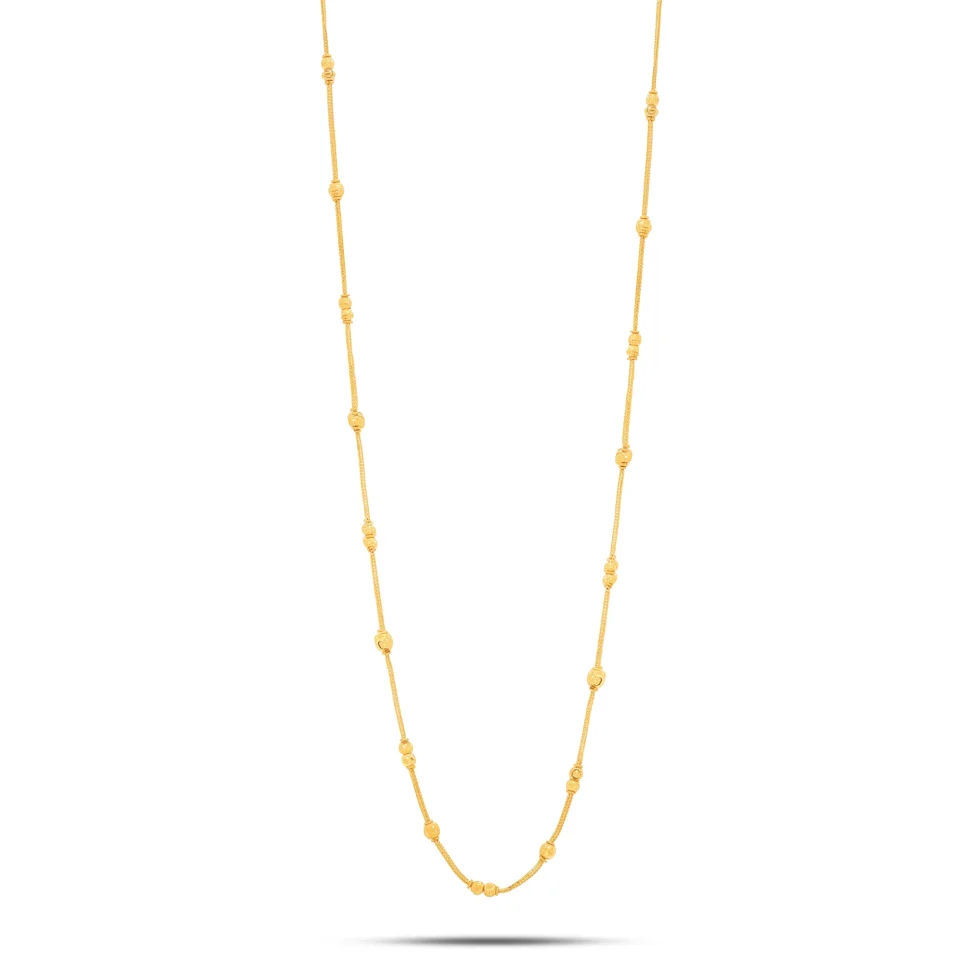 This gold chain features delicate bead accents placed at regular intervals, adding texture without heaviness. A clean, contemporary design suited for both casual and polished looks.