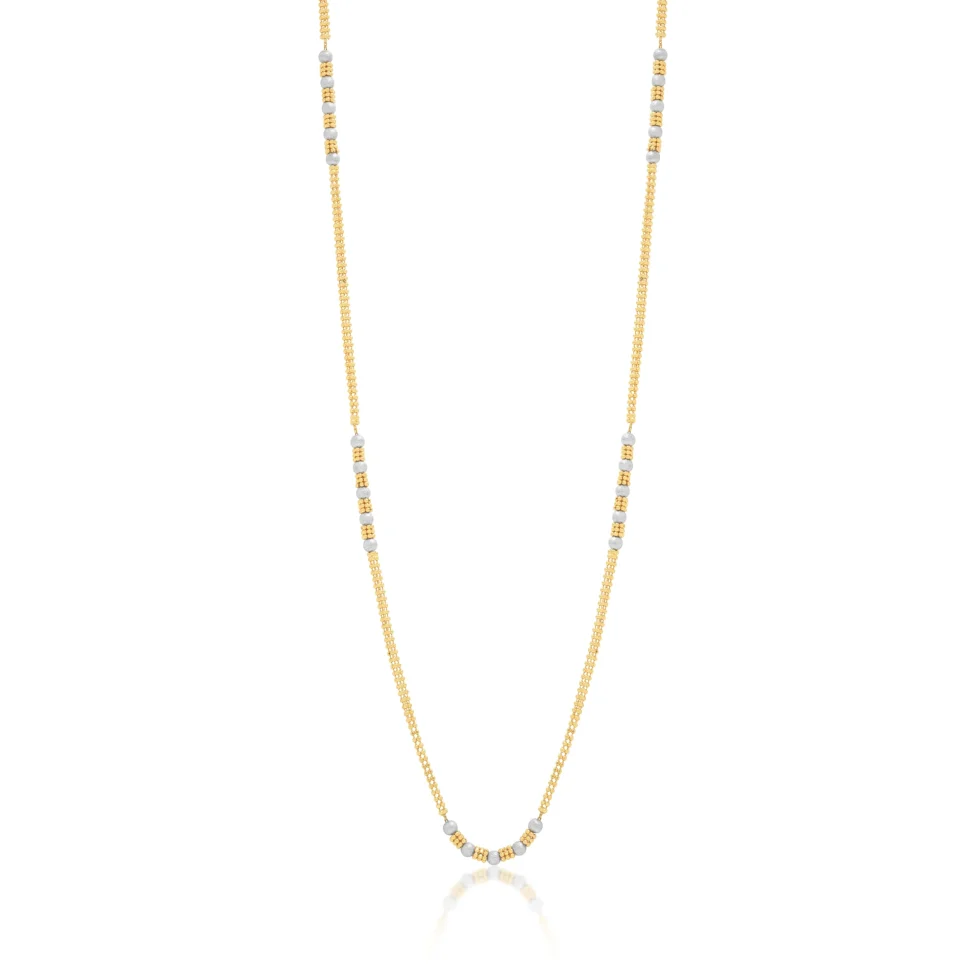 This delicate gold chain features evenly spaced accent beads that add a soft visual rhythm. Lightweight and refined, it is ideal for those who appreciate understated luxury.