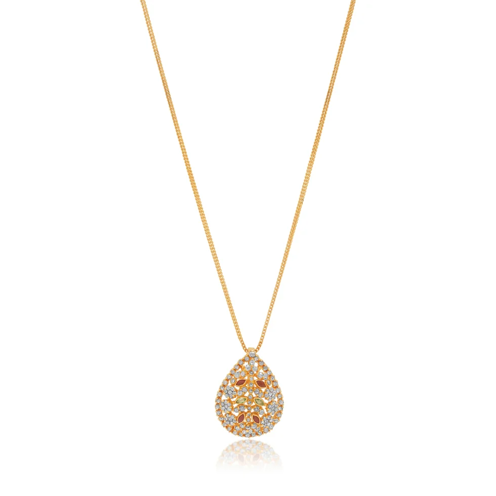 Crafted in a classic drop silhouette, this gold locket features intricate detailing and subtle colour accents. Symbolising purity and continuity, the design blends traditional elegance with modern refinement for a luminous, enduring statement.