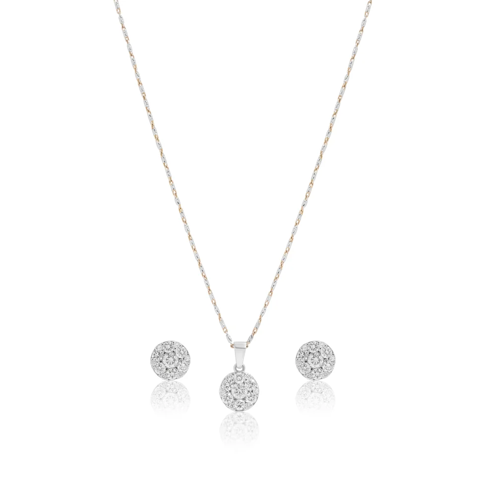 Featuring a perfectly balanced round diamond cluster, this locket set delivers timeless elegance in a clean, contemporary form. Paired with matching stud earrings and a sleek chain, it’s designed for effortless everyday luxury.