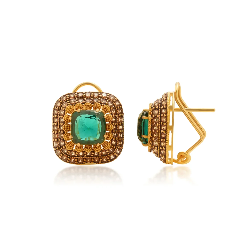 Featuring a bold square emerald centerpiece surrounded by intricate bead-set borders, this design exudes sophistication. The dimensional gold layers add depth, making it a perfect ceremonial piece.