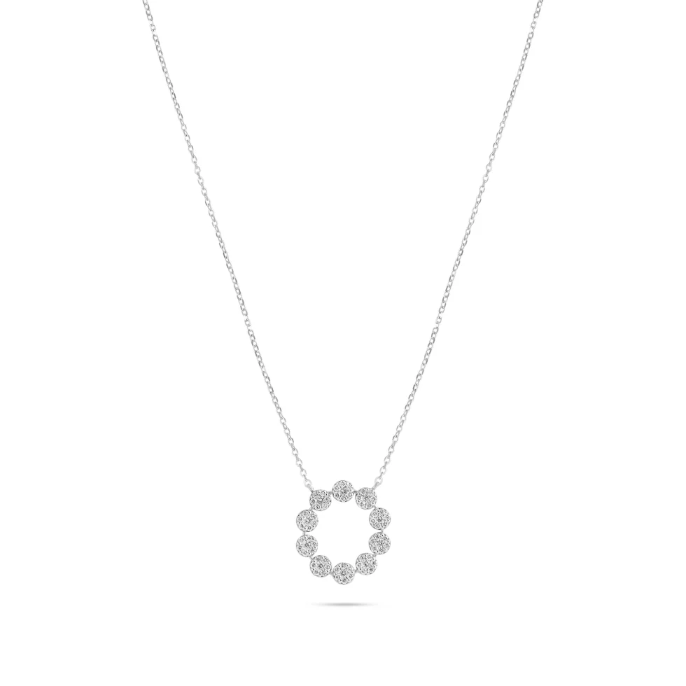 The Eternelle Diamond Chain captures the essence of infinity and elegance. Its circular pendant, crafted from a seamless arrangement of brilliant diamonds, symbolizes unity, wholeness, and timeless grace. Suspended on a fine, delicate chain, it reflects light with effortless brilliance.