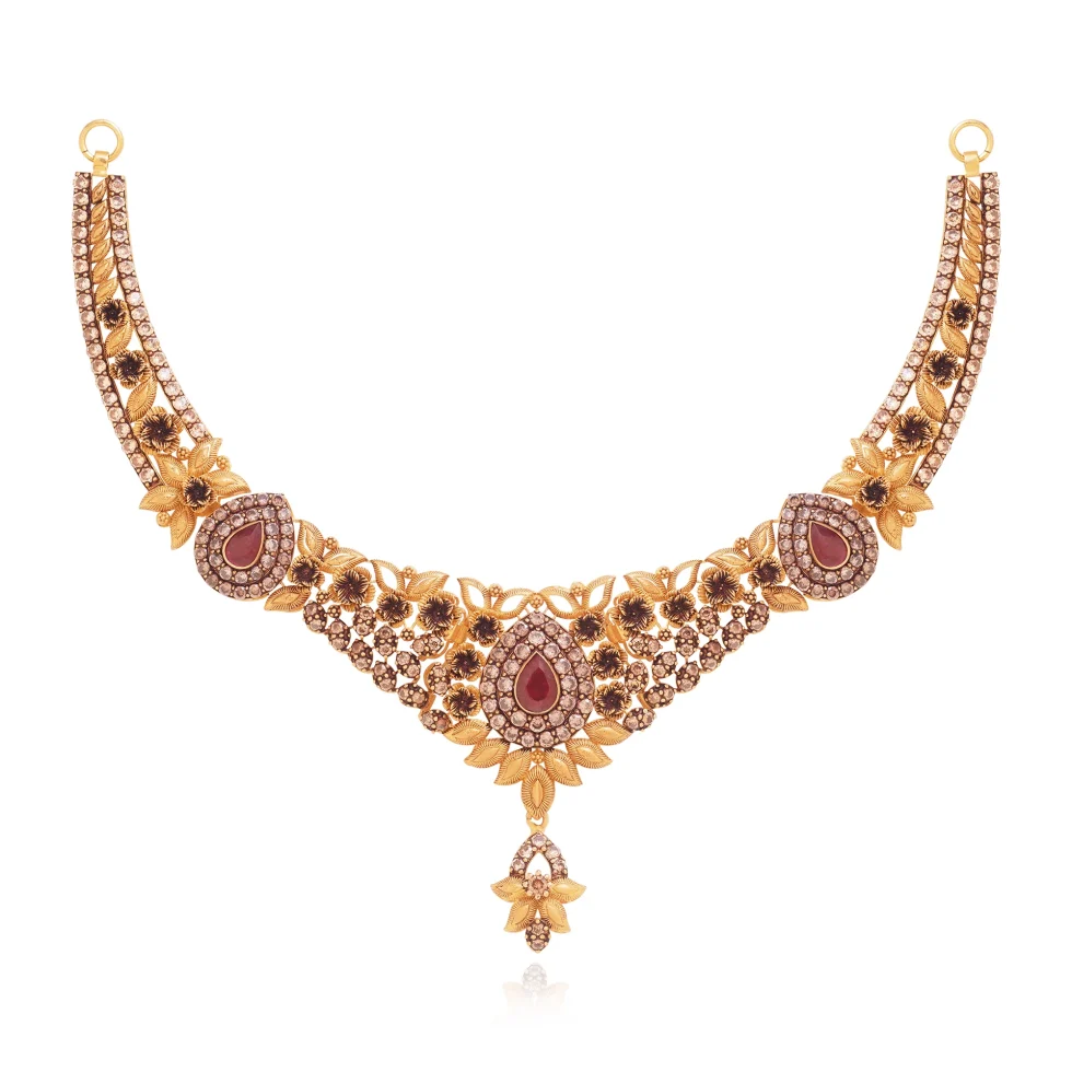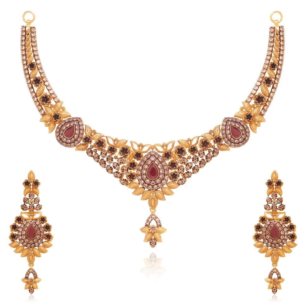 Designed with ornate floral artistry, the Floral Empress Set pairs detailed gold textures with luminous ruby accents. A regal creation that reflects heritage luxury and ceremonial grandeur.