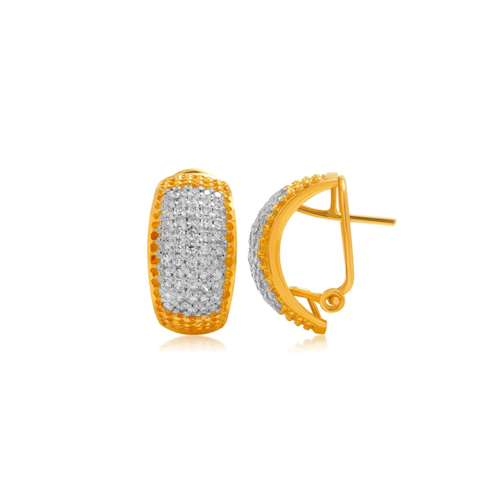 Its softly curved form sparkles with a seamless row of stones, beautifully framed by rich golden borders that enhance the contrast. Lightweight and polished, this bali adds effortless sophistication to both casual and formal looks.
