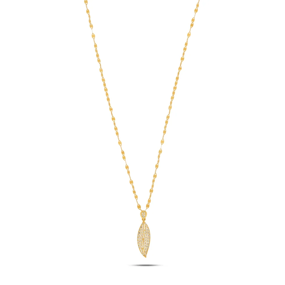 Designed with a delicate gold chain and a finely detailed leaf pendant, this piece symbolizes natural elegance and timeless beauty. Accented with subtle stone detailing, it offers a graceful sparkle perfect for everyday wear.