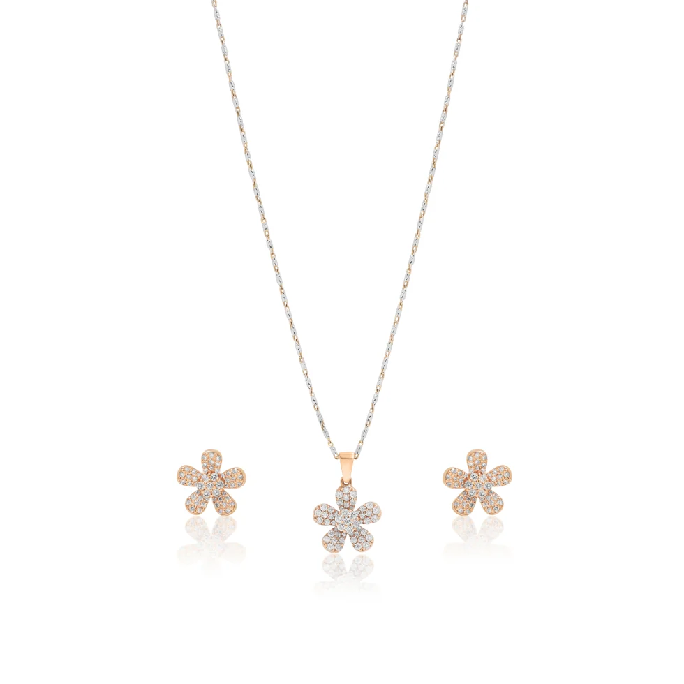 A beautifully proportioned diamond pendant set featuring a graceful floral motif in warm rose gold. Designed for understated luxury, it’s ideal for daily wear or meaningful gifting.
