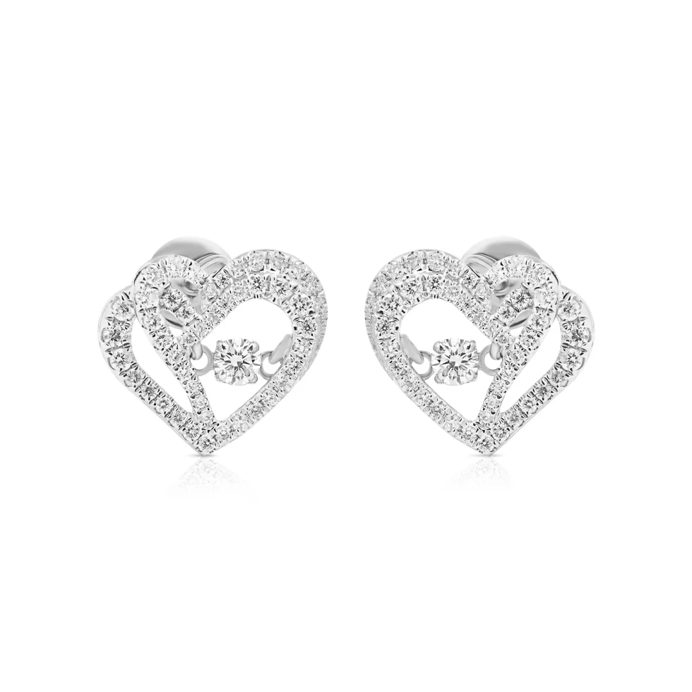 Crafted with precision-set diamonds, these heart-shaped diamond tops celebrate love through graceful design and radiant sparkle. The open heart silhouette is delicately outlined with brilliant diamonds, while a single floating diamond at the center adds subtle movement and depth.