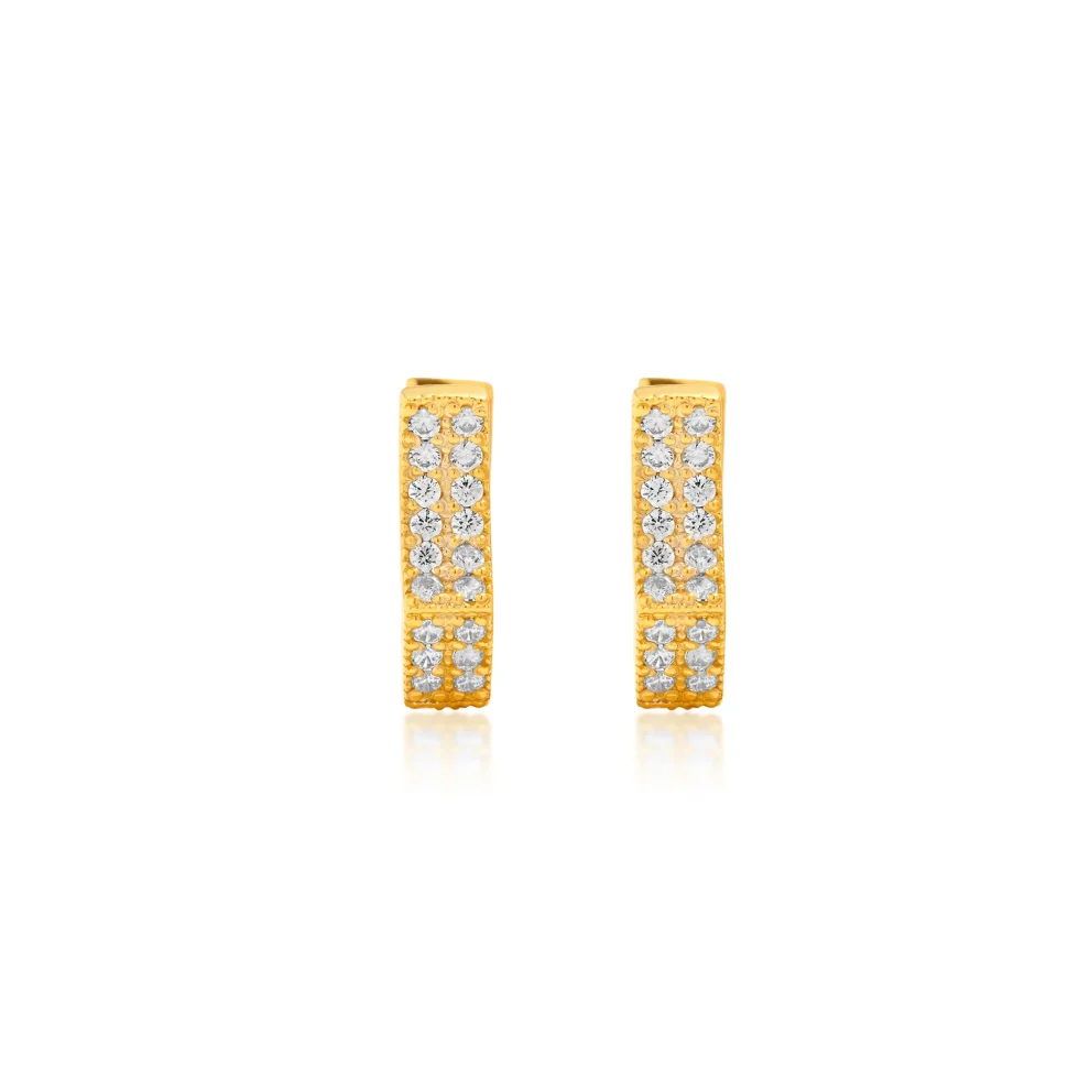A sleek geometric silhouette lined with two rows of brilliant stones, these tops offer a perfect blend of structure and sparkle. Their modern shape and radiant finish make them ideal for everyday elegance.