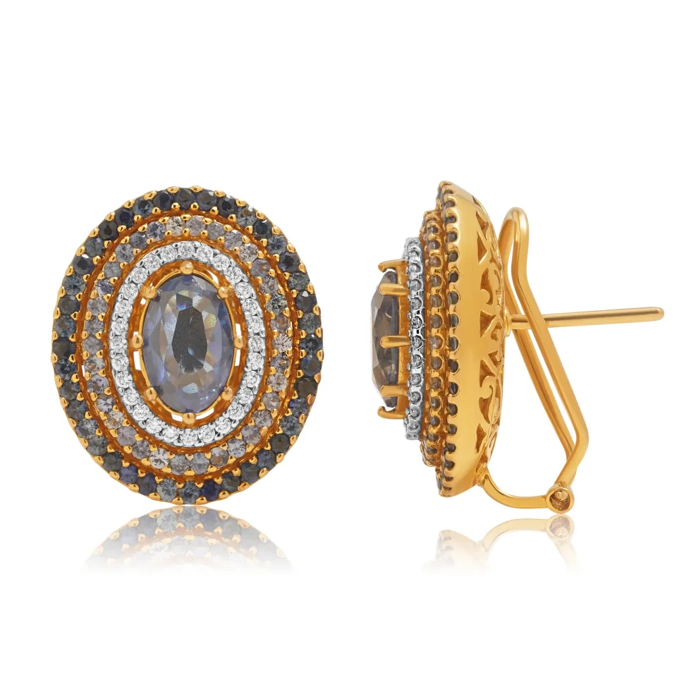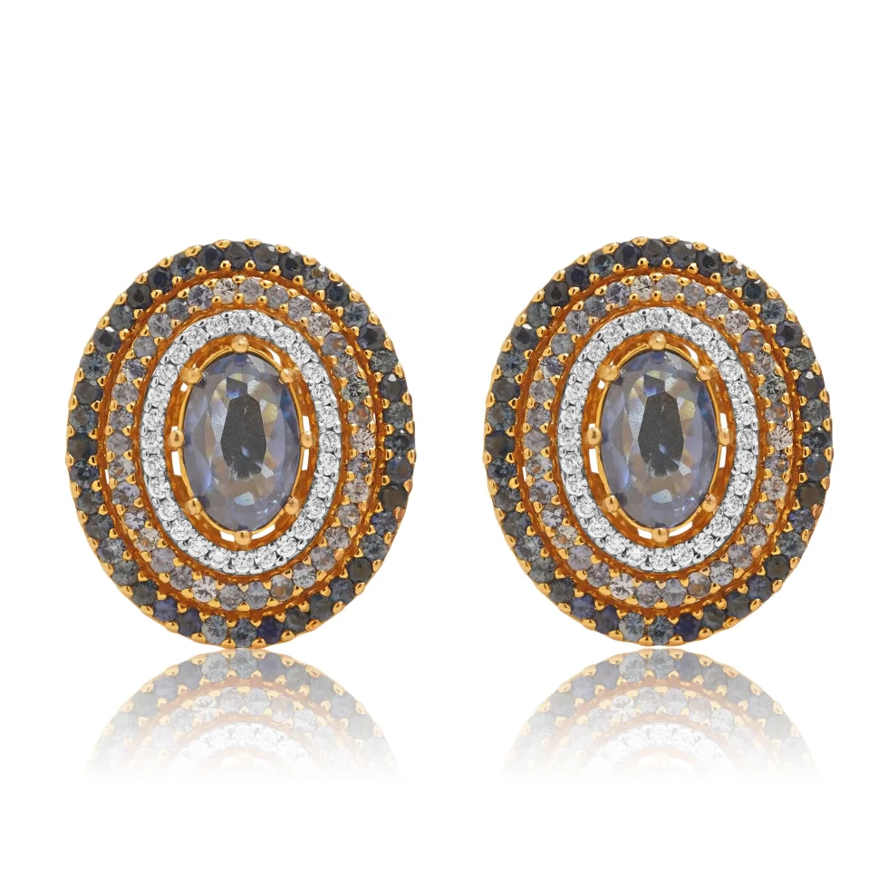 Surrounded by concentric halos of shimmering stones, the central gem radiates a mysterious, moonlit glow that instantly draws the eye. Each layered ring adds depth, dimension, and a touch of drama, creating a silhouette that feels both bold and exquisitely refined.