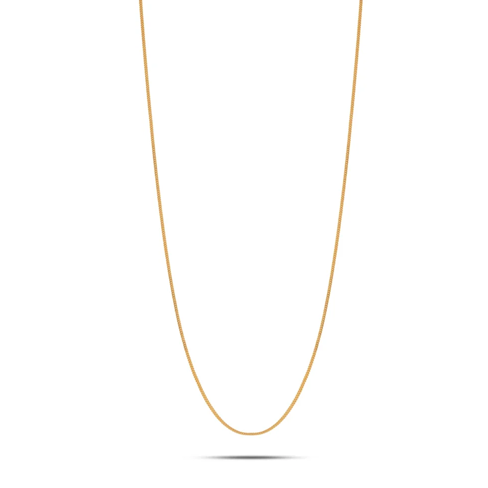 This slender gold chain features subtle detailing and a polished finish, delivering quiet elegance. Ideal for everyday styling, whether worn alone or paired with a pendant.