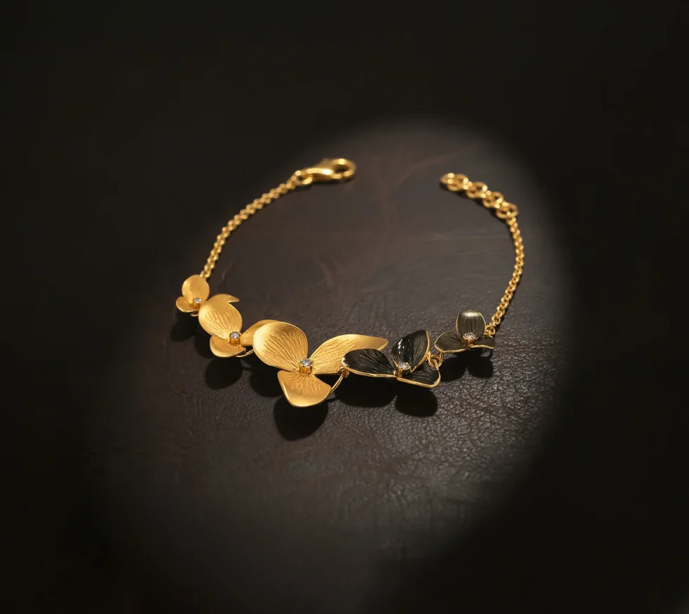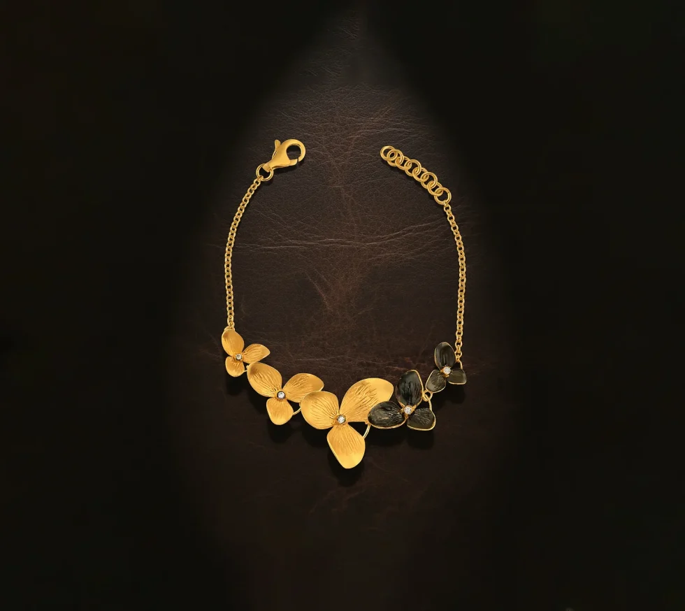 Inspired by ancient botanical motifs seen in Anatolian and Roman jewellery, flowing floral forms have long symbolised growth, continuity, and nature’s harmony. Traditionally worn to celebrate renewal and the bond between earth and beauty, this bracelet carries that historic meaning in a graceful, fluid design.