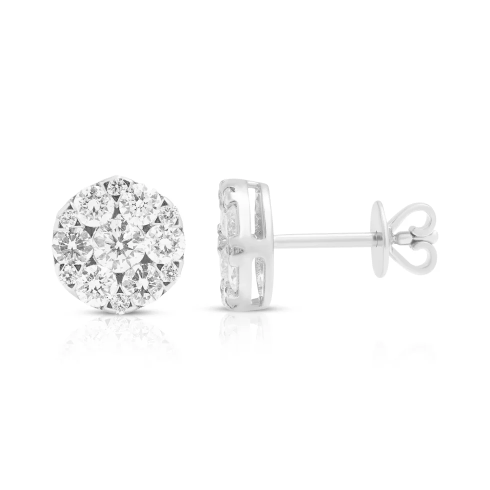 Crafted to highlight maximum radiance, the Pure Brilliance Diamond Studs showcase a harmonious arrangement of round diamonds set closely for enhanced shine. A classic design that embodies understated luxury and lasting elegance.