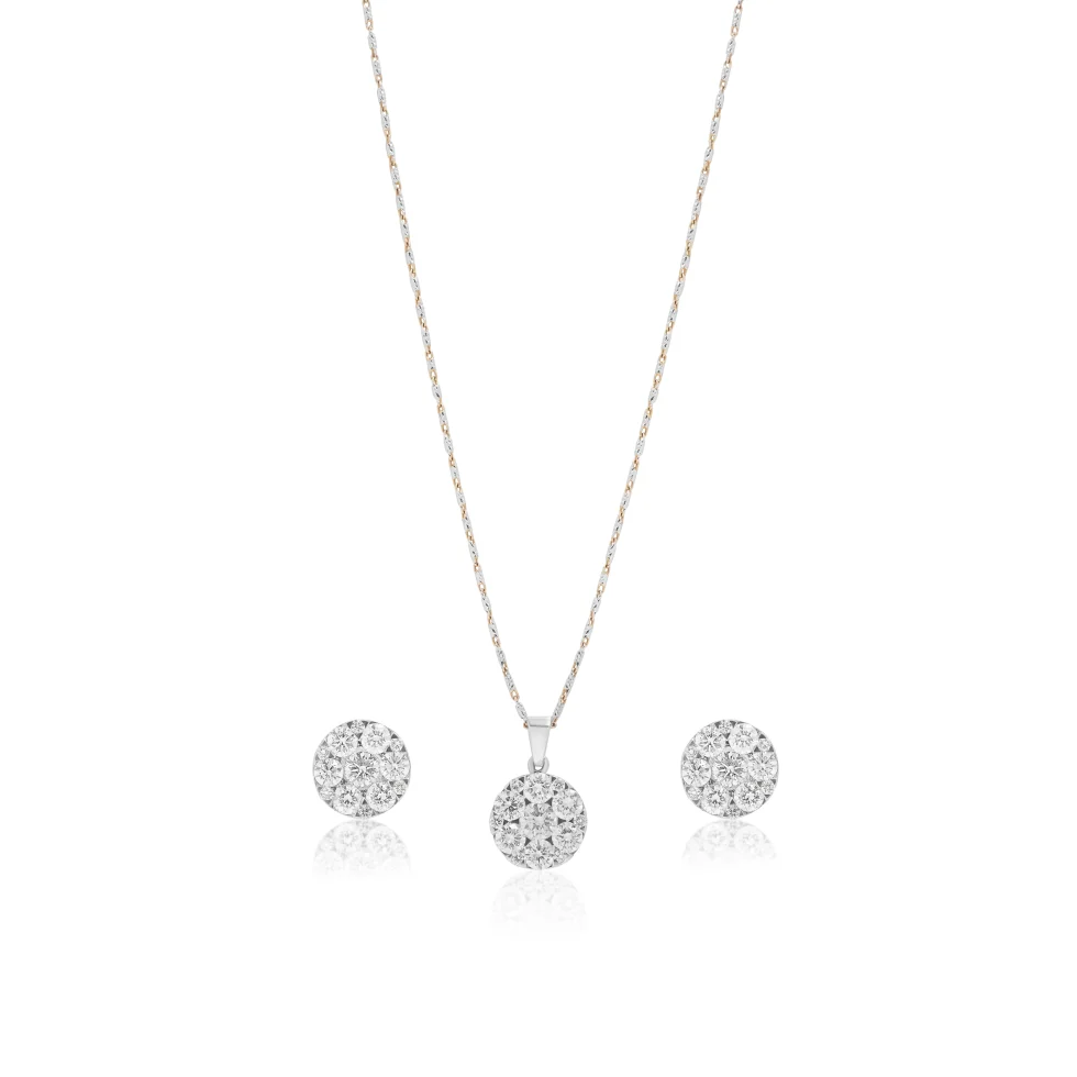 This locket set highlights a radiant diamond cluster arranged to maximize brilliance. The matching studs mirror the same clean design, creating a refined and versatile ensemble suited for any occasion.