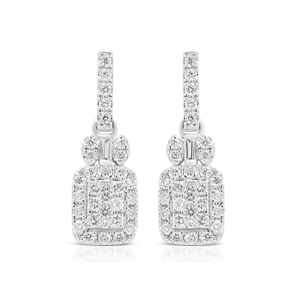 Crafted with precision-set diamonds, these tops showcase a refined balance of clean geometry and radiant sparkle. The rectangular drop silhouette is accented by a delicately diamond-lined stem, creating graceful movement and depth. Designed to reflect light from every angle, this piece blends timeless elegance with a contemporary edge.