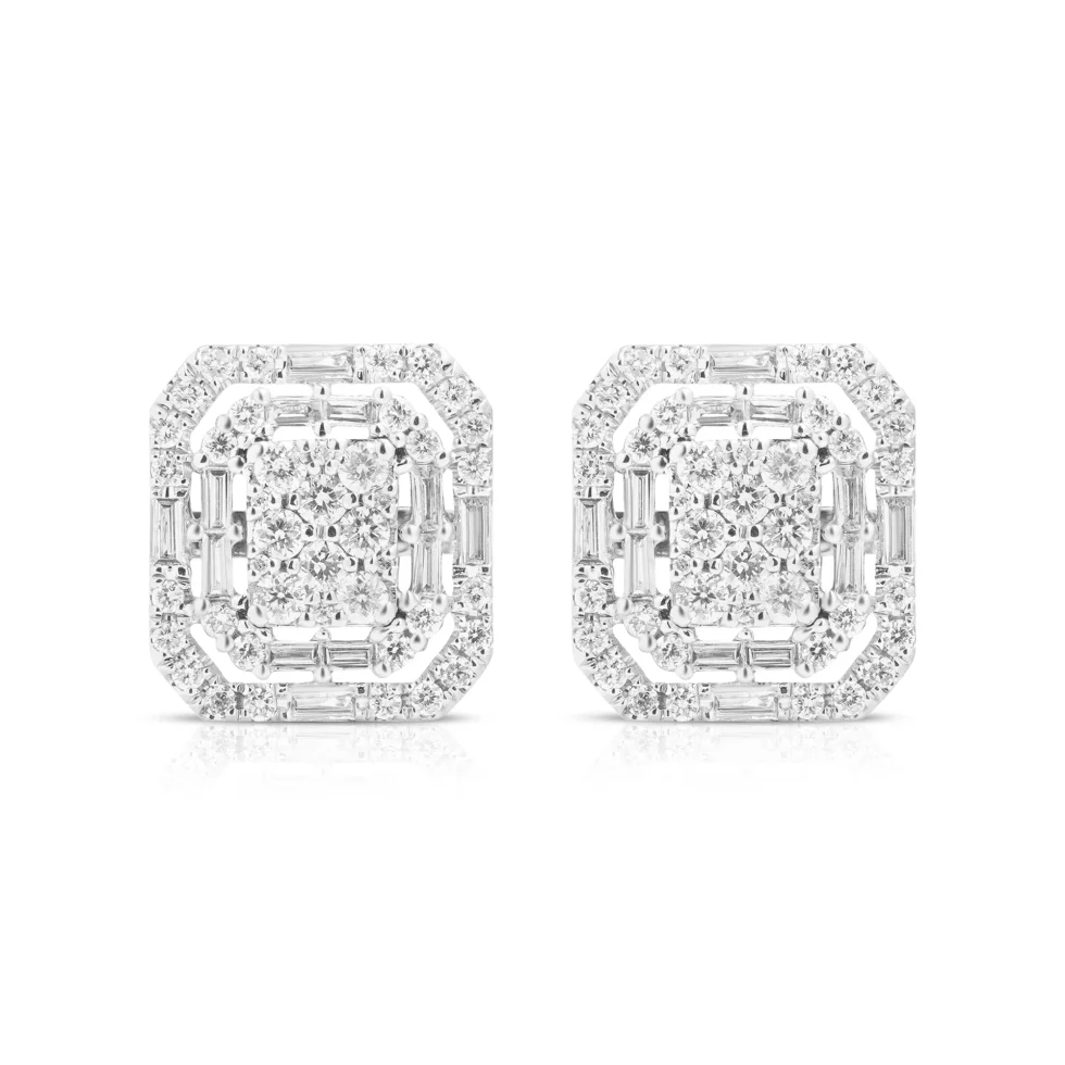 Expertly crafted with a distinctive octagonal silhouette, these diamond tops showcase a brilliant cluster of round diamonds at the center, framed by precisely set baguette and round diamonds along the edges. The layered halo design enhances depth, symmetry, and sparkle, creating a refined illusion of grandeur.