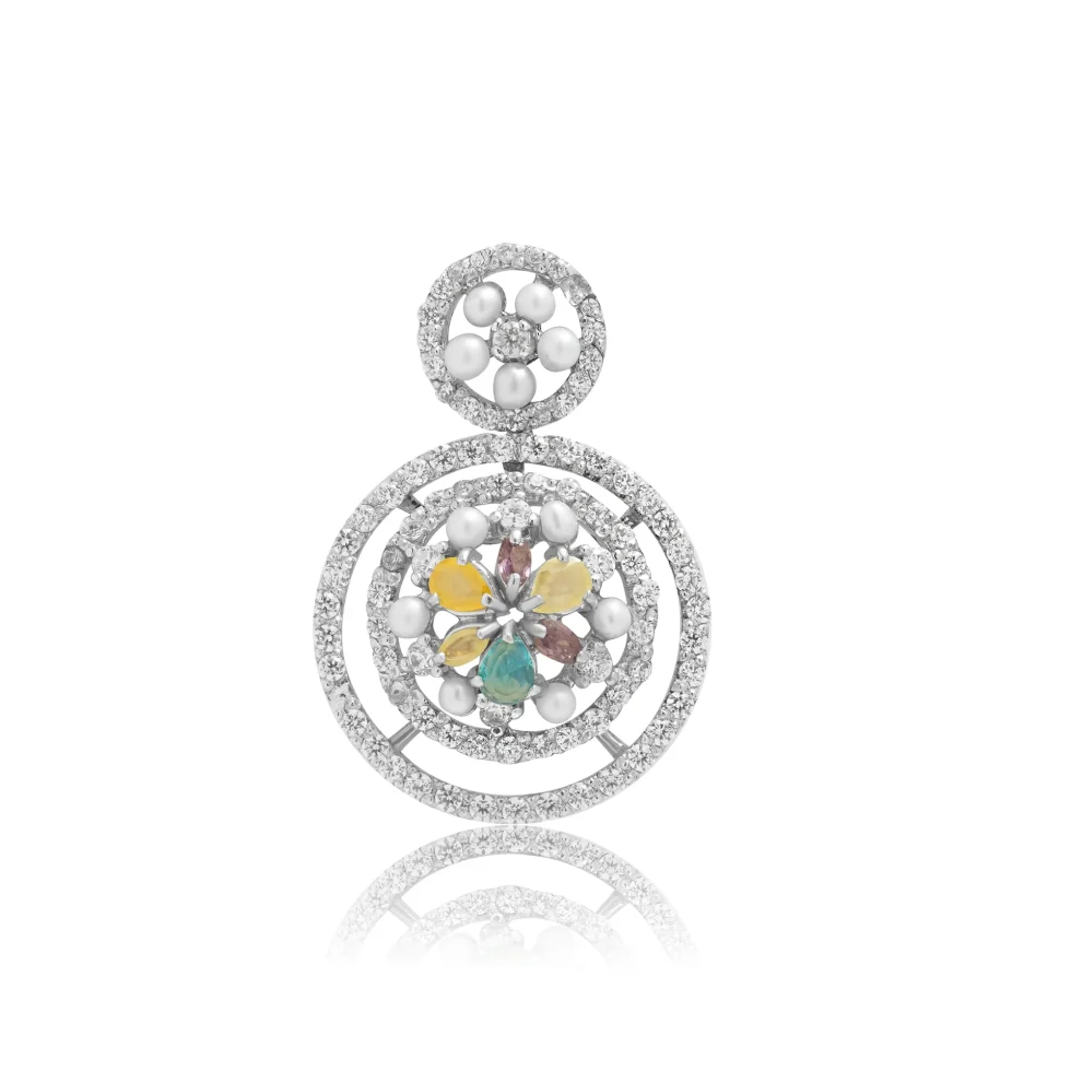A symphony of pastel gemstones, pearls, and dazzling diamonds arranged in layered circular harmony. Richly detailed yet polished, these tops offer a luxurious touch of color and brilliance.
