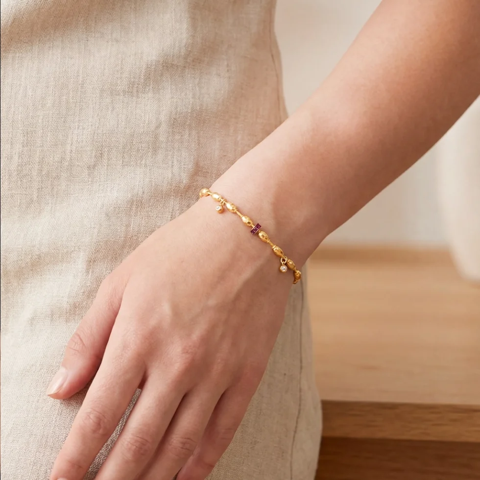 Rooted in Anatolian and Hellenistic design, chain bracelets with suspended elements once signified protection and enduring continuity. Crafted in gold, the uninterrupted links expressed lasting power, while the gentle motion of pendants was thought to invite blessings. This bracelet reimagines an ancient legacy in a timeless form.