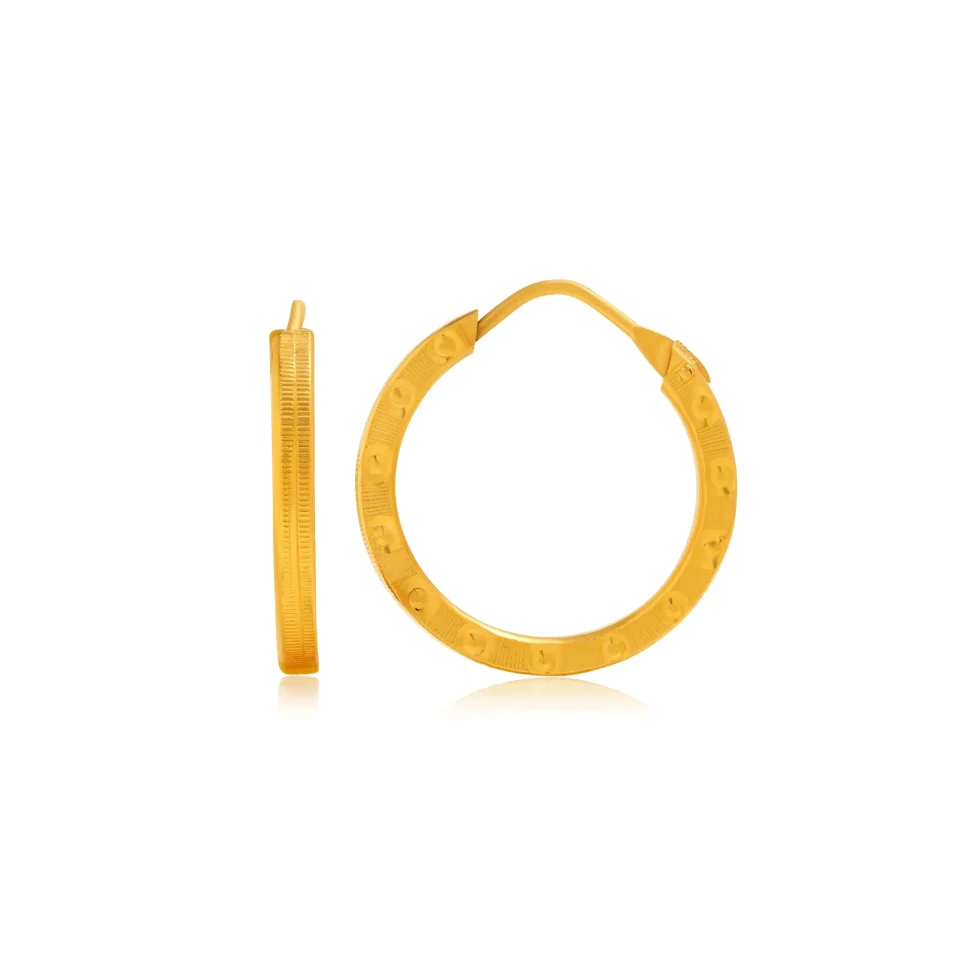 Crafted with precision, the linear texture creates a soft shimmer across the hoop, complemented by delicate dot motifs. Lightweight and timeless, this bali pairs seamlessly with both casual and traditional attire.