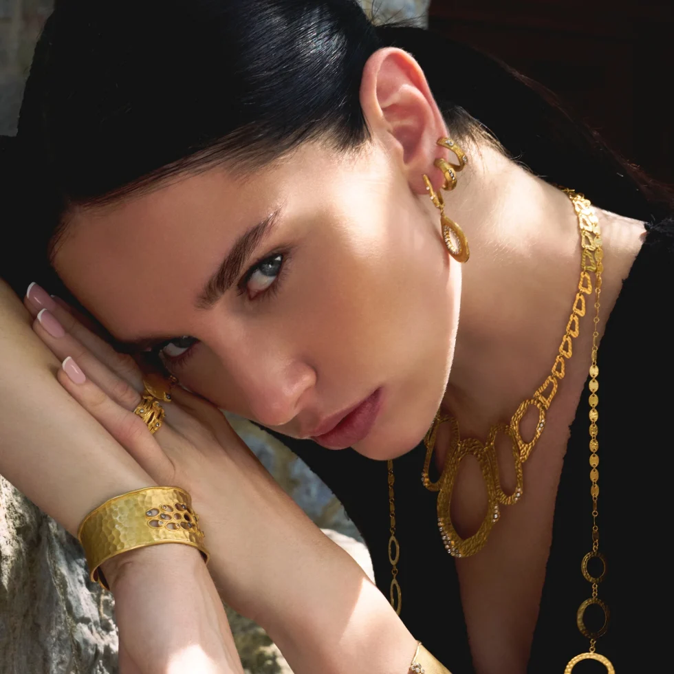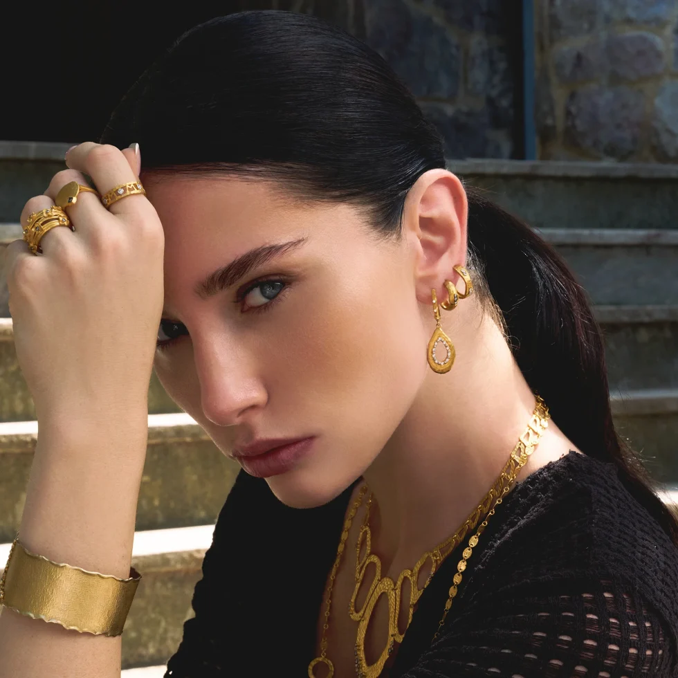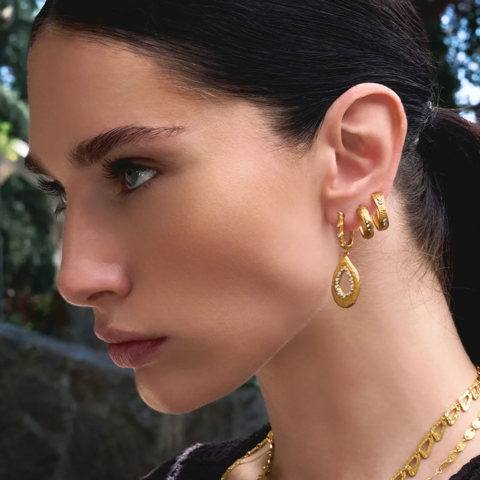 Rooted in ancient belief, the drop form symbolised purity, renewal, and life’s continuous flow. Regarded as sacred in early cultures and connected to balance and creation, these gold earrings reimagine that symbolism through graceful, timeless design.
