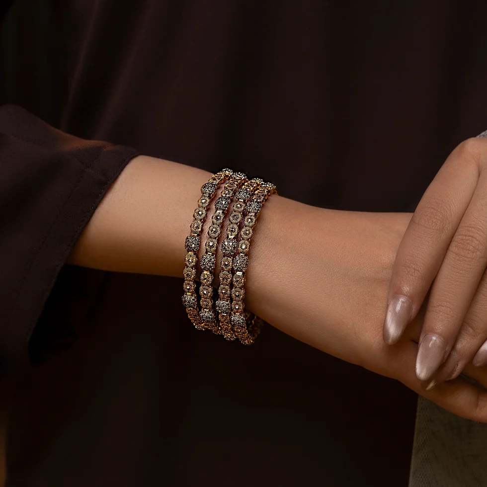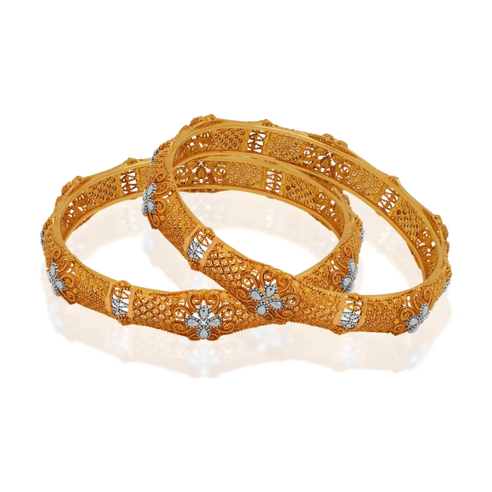 Crafted with meticulous lattice patterns and silver-accented blossoms, this pair exudes effortless elegance. The interplay of openwork and textured gold adds depth, while the floral motifs bring a soft, feminine charm to the overall look.