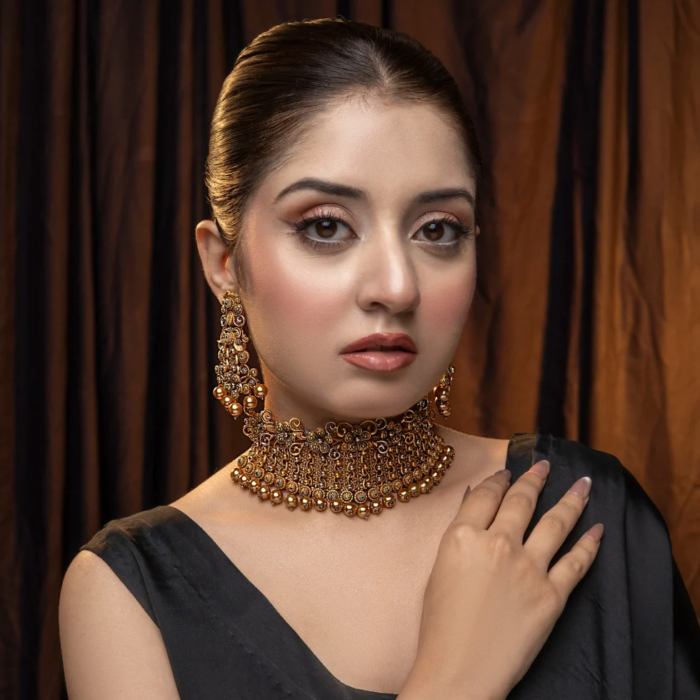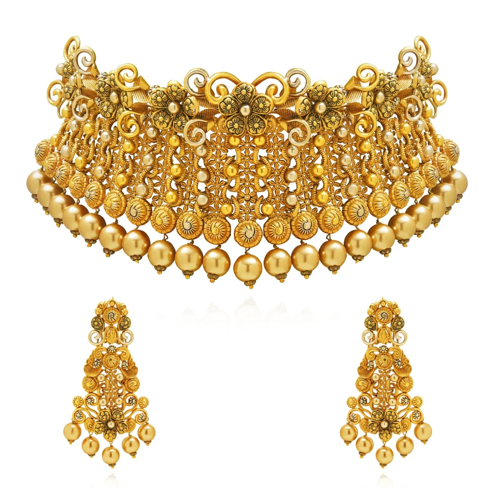 Crafted to captivate, the Majestic Cascade Set showcases a rhythmic fall of golden spheres and intricate patterns. Each element speaks of fine craftsmanship and noble heritage a statement of confidence and timeless splendor.