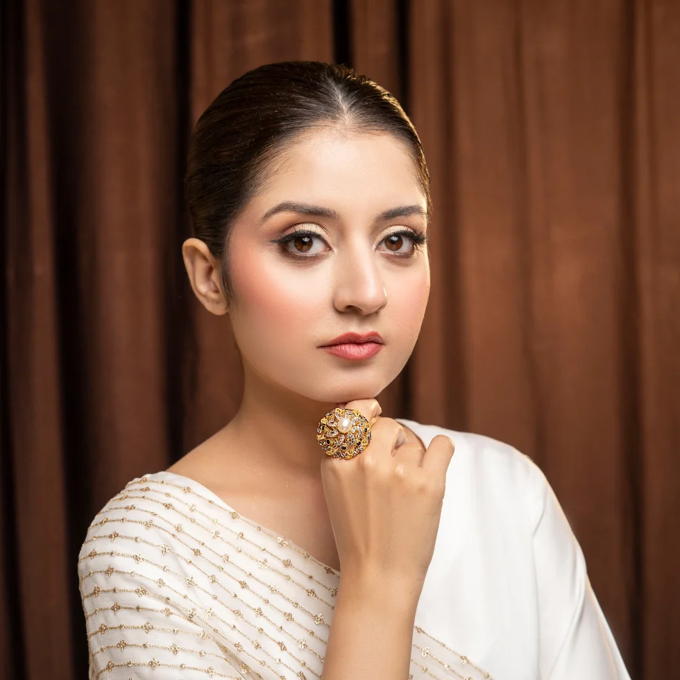 A vision of royal beauty, the Orlena Empress Ring blends classic pearl charm with elaborate gold filigree and gemstone accents. Bold yet refined, it’s crafted for those who carry elegance like a crown.