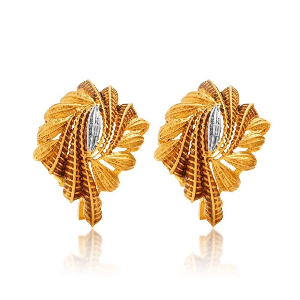 Inspired by golden sunlight filtering through leaves, the Solaris Leaf Earrings merge intricate carving with luminous metallic contrasts. Their dynamic form exudes movement and grace, creating an aura of regal sophistication.