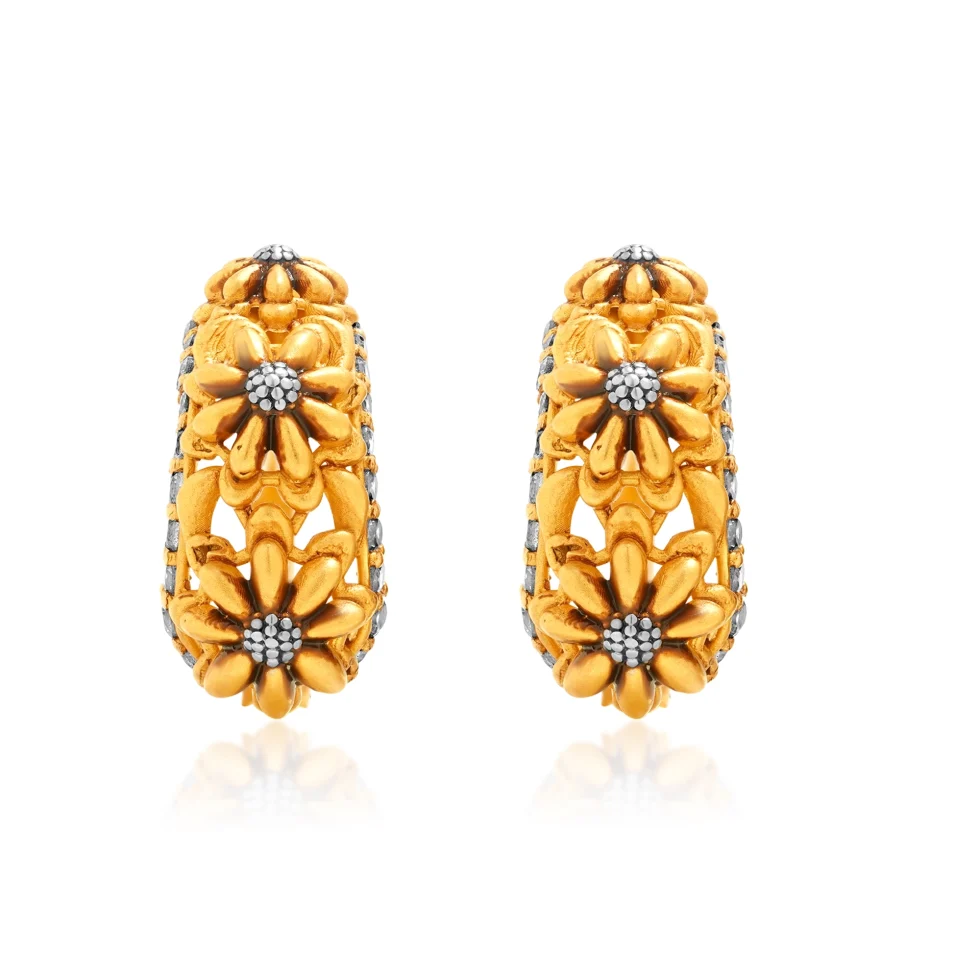 The Soleil Petal Earrings embody the golden glow of the sun, crafted with layered petals that radiate warmth and brilliance. Each petal is delicately detailed, surrounding shimmering stone accents that capture light with every movement. A perfect blend of artistry and elegance.