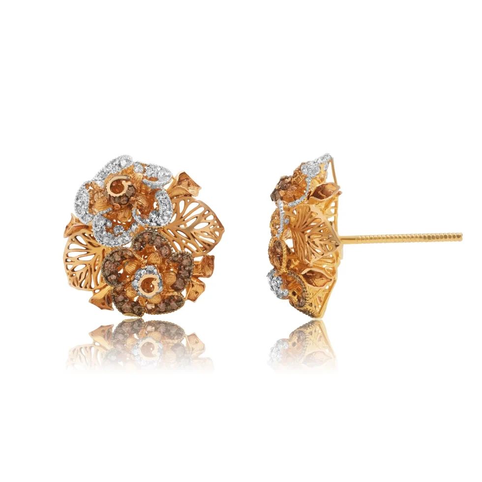 These gold tops feature a dual-floral composition with layered blooms and finely carved leaf panels. The openwork gold lattice adds dimensional depth, creating a refined statement piece for festive and traditional occasions.